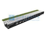 Комплект Gidrolica Sport: лоток водоотводный ЛВ-10.14,5.08 пластиковый с решеткой РВ-10.14,2.100 стальной оцинкованной, кл.А15